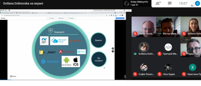 На традиційну зустріч зі студентами освітніх програм спеціальності «Прикладна математика» завітала наша колишня студентка, а тепер Full Stack Software Engineer компанії Netfully Світлана Доліновська, яка презентувала учасникам зустрічі головні напрями діяльності компанії і розповіла про основні вимоги до кандидатів на працевлаштування.
