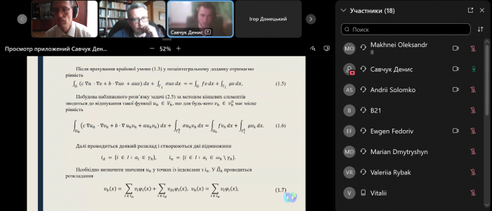 21 червня відбувся захист дипломних робіт випускників освітньої програми «Прикладна математика». Кафедра диференціальних рівнянь і прикладної математики від щирого серця вітає наших випускників із успішним захистом дипломних робіт та здобуттям освітнього ступеня «бакалавр».