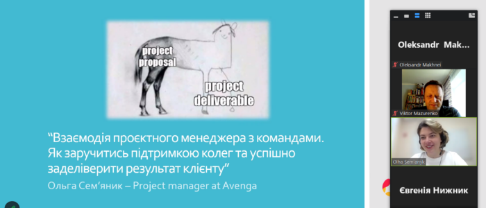 10 травня 2023 року відбулась онлайн-зустріч студентів освітніх програм “Прикладна математика” і “Комп’ютерне моделювання та технології програмування” з проєктним менеджером IT-компанії Avenga Ольгою Сем’яник.