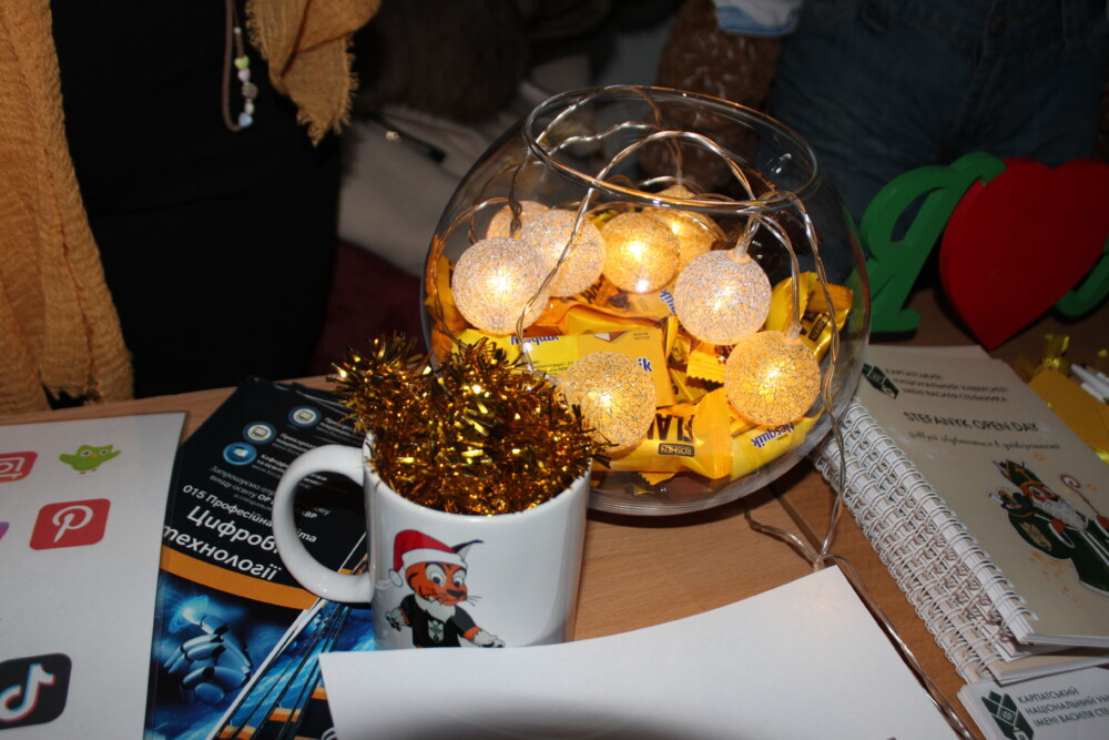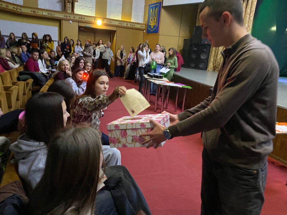 Святкову вікторину провела студентка факультету іноземних мов, івент-менеджер Центру професійної кар’єри та освіти Мар’яна Данилюк. Їй допомагали Ірина Воробець та Віталія Хацевич.