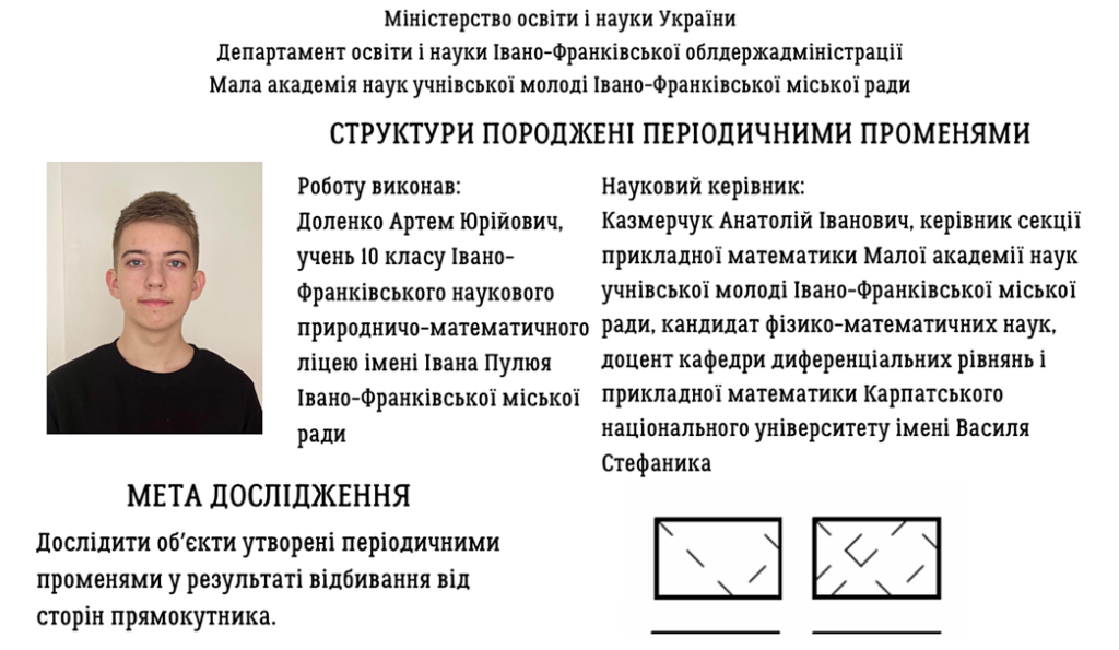 - у секції прикладної математики I місце посів Артем Доленко, учень 10 класу наукового природничо-математичного ліцею ім. Івана Пулюя Івано-Франківської міської ради;