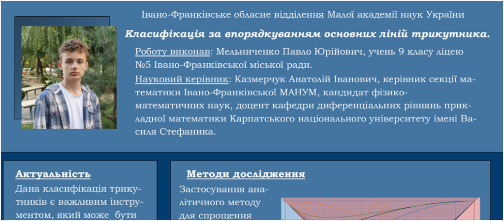 - у секції математики I місце посів Павло Мельниченко, учень 9 класу ліцею №5 Івано-Франківської міської ради;