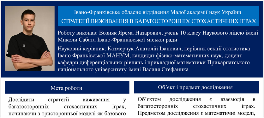 - у секції статистики I місце посів Ярема Возняк, учень 10 класу наукового ліцею ім. Миколи Сабата Івано-Франківської міської ради.